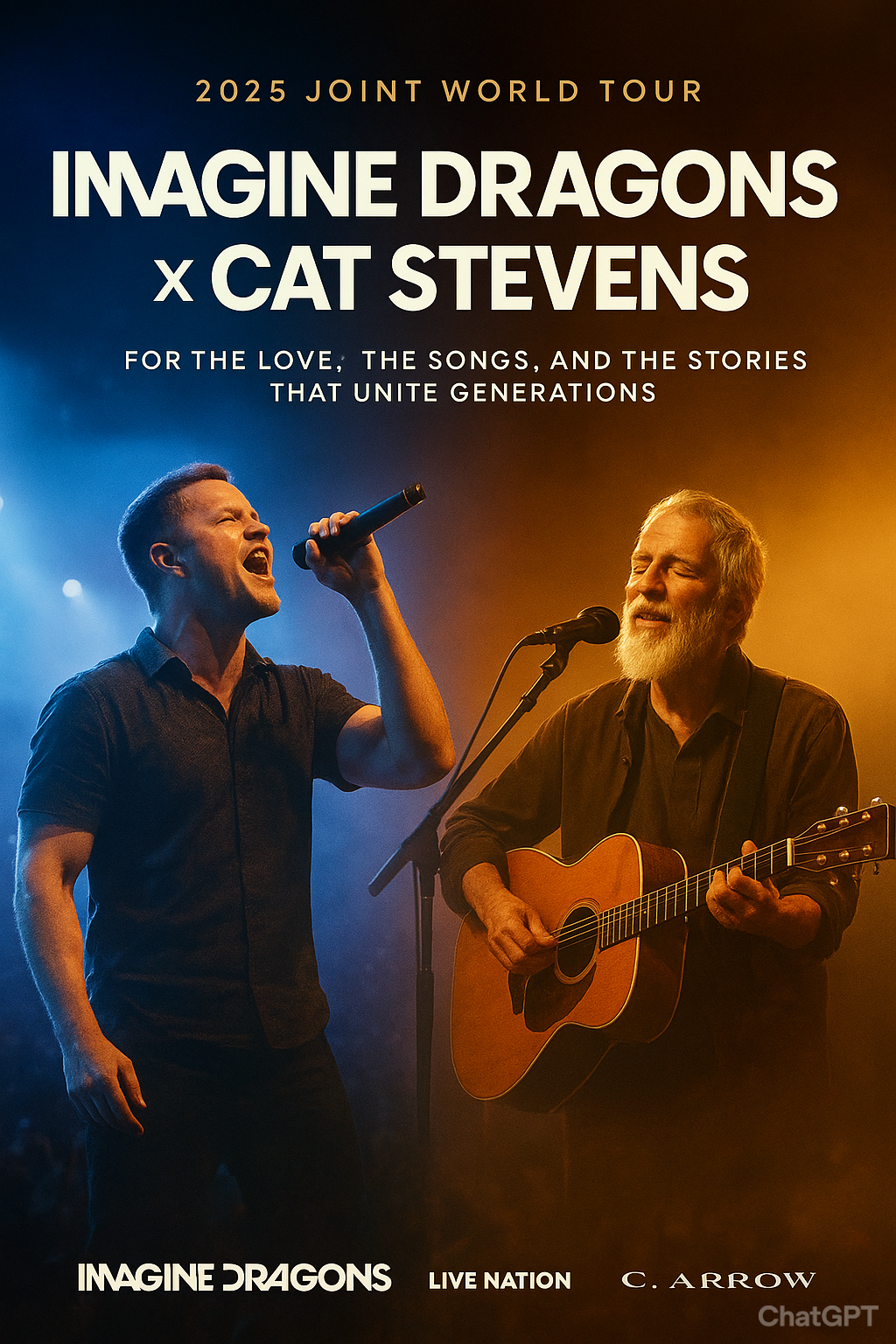 The music world is buzzing with excitement as Imagine Dragons and Cat Stevens have just announced a historic joint tour that promises to unite generations of fans under one powerful, emotional, and unforgettable experience. Blending modern alternative anthems with timeless folk classics, this collaboration is as unexpected as it is inspiring—a true celebration of storytelling, humanity, and the magic of live music.