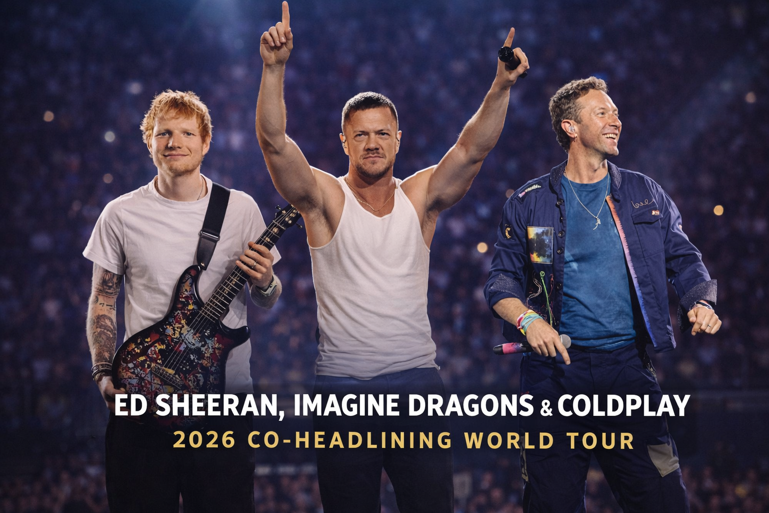 The global music world is buzzing as Ed Sheeran, Imagine Dragons, and Coldplay officially announce a monumental 2026 co-headlining world tour. Bringing together three of the most influential and commercially successful acts of the past two decades, this tour is already being described as one of the biggest live music events in modern history. Fans across the globe are preparing for an unforgettable experience that blends pop, rock, and alternative sounds on one massive stage.
