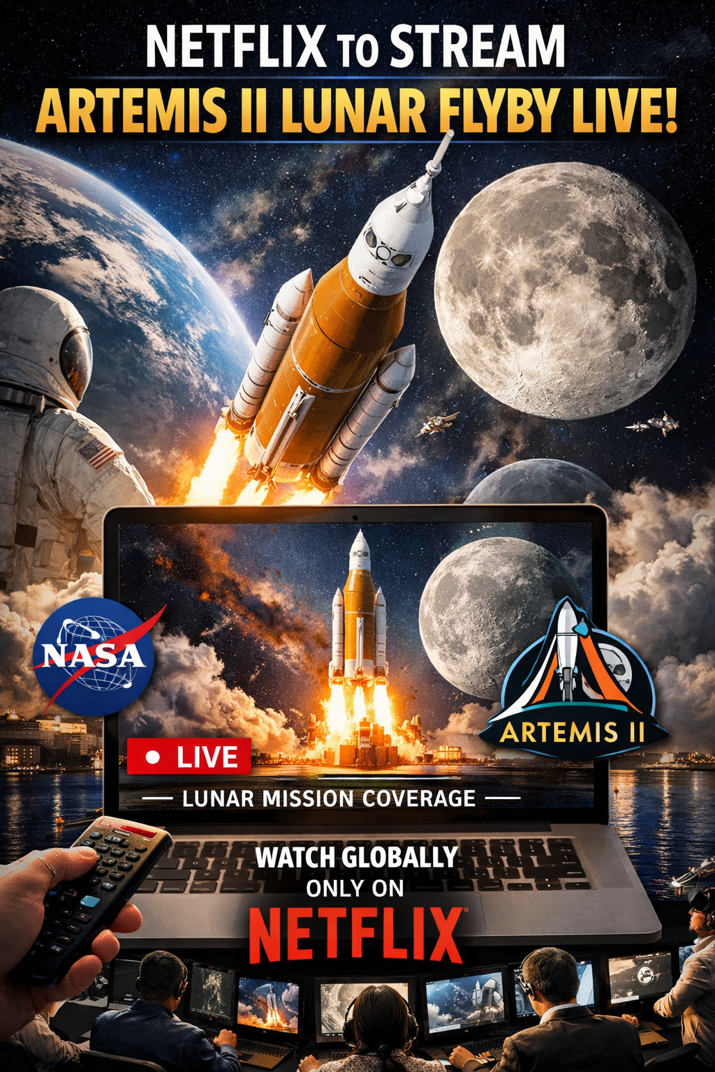 The streaming giant Netflix is making headlines again, this time for stepping far beyond its usual entertainment boundaries. In a surprising and ambitious move, the company has announced that it will air the NASA Artemis II lunar flyby live, giving viewers across the globe front-row access to a historic space mission. This marks a significant shift in Netflix’s strategy as it explores live broadcasting on a global scale..
