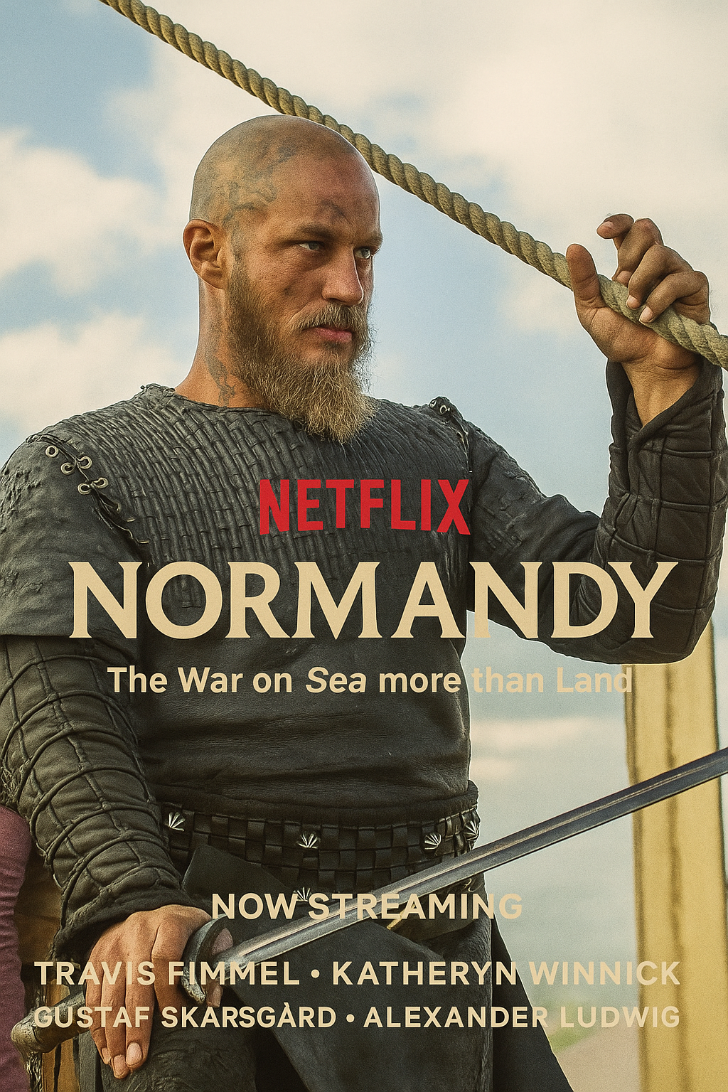“Normandy: The War on Sea More Than Land” is Netflix’s latest historical epic, an unrelenting dive into the brutal and majestic world of Viking conquest and survival. Starring Travis Fimmel, Katheryn Winnick, Gustaf Skarsgård, and Alexander Ludwig, the film captures the heart of Norse warfare in a way that feels both intimate and colossal. It’s a story of power, vengeance, and faith, set against the cold waves and blood-soaked shores of medieval Europe. Every scene is steeped in tension, painting a vivid portrait of a people who found glory not only on land but across the treacherous sea.