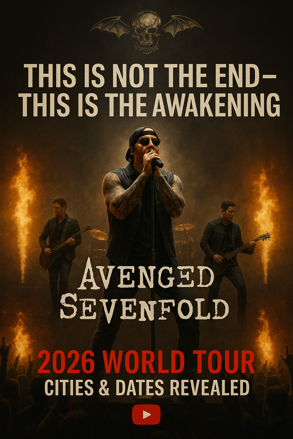 The metal world just shook to its core. Avenged Sevenfold, one of the most explosive and visionary bands of the 21st century, has officially announced their long-awaited 2026 World Tour. The revelation came through a cryptic teaser video that ended with the haunting words: “This is not the end — this is the awakening.” Within minutes, social media ignited with excitement, disbelief, and pure adrenaline as fans realized that A7X are returning to reclaim their throne.